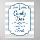 Poster de sinal de bar de doce para chá de fraldas, chá de panela ou casamento com em padrões de faixas de cinza claras com detalhes náuticos azuis-marinho escuros. Perfeito para um chá de fraldas náutico para um menino, casamento ou chá de panela.
