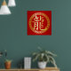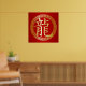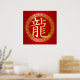 Celebre o Ano do Dragão com este design de captura de olhos com um símbolo dourado chinês (ou kanji japonês) para dragão rodeado por uma armação redonda em estilo ornamentado, em um fundo vermelho.
