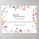 Este clássico e colorido sinal de boas-vindas florais é perfeito para um casamento simples. A design apresenta flores silvestres brancas, amarelas, roxas e brancas com folhagem em fundo de rosa e aquarela verde. Faça esta poster com o nome da noiva e do noivo, e a data do casamento.