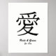 Poster Símbolo de Amor Kanji Negro Aniversário de Casamen