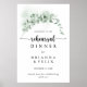 Este clássico sinal de boas-vindas do janto de ensaio de eucalipto é perfeito para um ensaio de casamento rústico. A design apresenta lindas folhas verdes de eucalipto com aquarela.