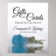 Este belo cartaz vai deixar seus convidados de casamento saberem onde eles devem deixar seus presentes e cartas. Possui um design elegante e elegante com um céu solteiro azul, azure ou turquesa longo e colorido, refletor ou espelhado em uma piscina de água. Há um obrigado curto que você envia juntamente com os nomes do casal.
