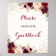 Poster Símbolo de Casamento Floral de Guestbook Burgundy