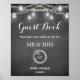 Poster de Banner de Sinal de Casamento do Livro Branco Negro para casamento com as Luzes de Corda e Mason Jar em um quadro-negro/quadro. Use a opção personalizar esta modelo para alterar o texto.