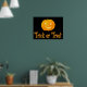 Impressão preto horizontal de sinal de Dia das Bruxas com texto laranja Trick ou Tratat. As dimensões do impressão de sinal (poster) são de 24 por 18 polegadas.
