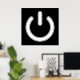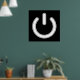 Símbolo clássico de energia preto e branco estético. Ligue e ligue o poster para um gabinete de trabalho, uma caverna do homem de jogos ou uma sala de dormitório. Símbolo de potência branco (símbolo IEC 5009) sobre fundo preto. Sinta o poder!