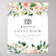 Este símbolo de mesa do livro de convidados apresenta uma elegante cor d'água, cor-de-rosa pincelada e florais brancos com uma combinação de fontes simples e eterno. É o sinal perfeito de mesa para um chá de fraldas, chá de panela, casamento ou qualquer evento que você tenha em mente.
