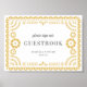 Este elegante, porém moderno, símbolo de recepção de casamento inspirado no papel picado apresenta um belo quadro de ornamentado numa cor de trigo ouro, um fundo branco clássico e uma tipografia festiva. Personalize este modelo como um sinal de mesa para obter favores, guia, menu, buffet, etc. O tamanho padrão é de 5" x 7", que ajustado o excelente em um quadro de foto de tamanho padrão que pode ser colocado em uma mesa. Esta elegante, porém moderna design é uma escolha fabulosa para um casamento de Latinx ou para o casamento de destino do México. Todo o texto é personalizável, basta clicar no botão "personalizar" para o texto. Veja a coleção para mais peças de coordenação!