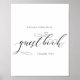 Cartaz de mesa personalizado do livro de hóspedes com mensagem personalizada e "livro de hóspedes" em elegante caligrafia de mão branca.