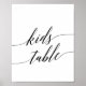 Este elegante cartaz de mesa de crianças da caligrafia negra é perfeito para um casamento simples. A design neutra apresenta uma poster minimalista decorada com tipografia romântica e caprichosa.