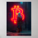 Símbolo Bitmoney legal em vermelho neon. Sinal futurista neon Crypto.