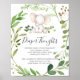 Dê aos seus hóspedes uma direção encantadora com nosso sinal de atividade de chá de fraldas de pensamentos de elefante, com cor d'água verde eucalipto garland e uma elegante letra de estilo manuscrito.