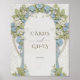 Direcione seus convidados com elegância usando este refinado cartaz de casamento "Cartões e presentes", maravilhosamente enquadrado por uma cascata de hidrangeas azuis, flores de marfim e verde-folha. A borda floral arquivada é enfeitada com detalhes intrincados do estilo aquarela, dando ao sinal um charme botânico eterno. Colocada contra um fundo de marfim suave, a mistura de serifa clássica e a delicada tipografia da escrita adiciona um toque luxuoso. Seja exibido em uma mesa de boas-vindas ou perto da estação de presentes, este sinal combina-se perfeitamente com uma decoração de casamento romântica, primavera ou inspirada na vintage.