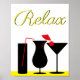 Este poster é preto e amarelo com um pop de vermelho com o texto, "Relaxe", com um gráfico de um copo de cocktails. Um visual moderno vai adicionar um pop de cor à sua cozinha.