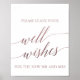 Este elegante sinal de bons desejos de caligrafia rosa-ouro é perfeito para um casamento simples. A design cor-de-rosa-pincelada apresenta uma poster minimalista decorada com tipografia de folha de ouro rosa-falso romântica e caprichosa. Os cartões de boa vontade são vendidos separadamente. Nota: Este design não apresenta folha de ouro rosa real. É um gráfico de alta qualidade feito para se parecer com folha de ouro rosa.