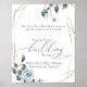 Dusty Blue Floral para combinar com o tema do casamento, um pedido dos seus convidados para assinarem um bloco para as suas memórias do livro de convidados. Rosas de aquarelas, folhas e bagas em azul-poeirento moderno rodeiam uma estrutura de ouro do estilo terrário geométrico com verde-sábio. Personalizar texto, estilo de fonte, cor e tamanho. Arte original criada para o BarefootBride™ por © WhimsicalArtwork™ - Esta é parte de um Conjunto completo de Artes de Casamento, chá de fraldas e outros artigos de papelaria para eventos semelhantes.