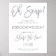 Símbolo de casamento da Hashtag (poster) prateada e branca com efeito brilhante prateado (faux, impresso como uma imagem) e texto personalizável - você pode adicionar sua hashtag, nome da noiva e noiva e a data do casamento. As dimensões do impressão de sinal (poster) são de 18 por 24 polegadas.