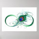 O símbolo do infinito com uma pena brilhante, verde, de pavão artístico sobre um fundo branco. Tatuagem.