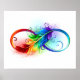 Símbolo infinito desenhado artificialmente com uma bela pena arco-íris sobre fundo branco. Tatuagem.