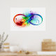 Símbolo infinito desenhado artificialmente com uma bela pena arco-íris sobre fundo branco. Tatuagem.