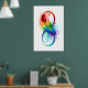 Símbolo infinito desenhado artificialmente com uma bela pena arco-íris sobre fundo branco. Tatuagem.