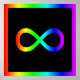 Simples gradiente do arco-íris cor infinita símbolo matemático em um poster preto quadrado com sotaques arco-íris ombre na borda. Atualizado em: 22/9/15