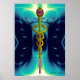 Pôster Símbolo Médico CADUCEU Dourado Ondas Azuis Teal Aq