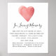 Um sinal de memorial de casamento que pode ser colocado numa mesa. Ele apresenta um coração de aquarela vermelha, um sentimento memorial e então uma lista dos que devem ser lembrados.
