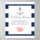 Poster Símbolo Memorial de Casamento Náutico Floral de Aq