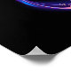 Símbolo luminoso, roxo e infinito com beija-flor azul voadora, luminosa, em fundo preto. Neon.