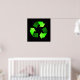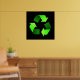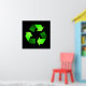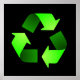 Símbolo verde de três reciclagens de seta em um fundo preto.