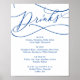 Este cartaz romântico de bebedeira azul-safira é perfeito para um casamento simples. O clássico design moderno apresenta espirais ricos e turbilhões brancos com magnífica e elegante tipografia à mão. Personalize o sinal com as bebidas disponíveis na sua recepção.