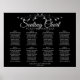 Este gráfico de assentos de 8 mesas facilitará aos seus convidados encontrar os assentos na sua recepção de casamento. Possui um simples design elegante de texto de cinza prateada pálida com fundo preto e uma borda floral de folha de prata. Tem assentos para 80 convidados.