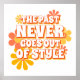 Poster de arte de parede divertida para qualquer um. Com o ensolarado amarelo de verão e as flores cor de laranja coral brilhantes e flores bonitinhas do estilo 'O Passado Nunca Sai do Estilo', o texto da citação do texto. Design de hipster Whimsical para aqueles que amam o estilo retrógrado da moda tanto quanto coisas modernas e novas.