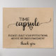 Este simples sinal de cápsula de tempo de caligrafia é perfeito para um casamento rústico. A design minimalista apresenta uma elegante letra de escrita de pincel e um adorável coração feminino num fundo kraft falso. Cartões de cápsula de tempo são vendidos separadamente. Por favor, observe que isto não está impresso em papel kraft real. É um gráfico de alta qualidade feito para parecer papel kraft.