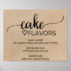 Este simples sinal de sabor de bolo de casamento kraft é perfeito para um casamento rústico. A design minimalista apresenta uma elegante letra de escrita de pincel e um adorável coração feminino num fundo kraft falso. Por favor, observe que isto não está impresso em papel kraft real. É um gráfico de alta qualidade feito para parecer papel kraft.