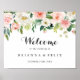 Este simples sinal de boas-vindas de folhagem floral verde é perfeito para um casamento tropical. A design apresenta rosas brancos, cor-de-rosa e pincéis pintados à mão, embutidos em folhagem verde, inspiradora beleza artística. Faça esta poster com o nome da noiva e do noivo, e a data do casamento.