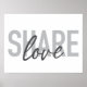 Design moderno, simples, mínimo tipográfico de um ditado "Compartilhe amor" em tons de cor de cinza. Arte gráfica legal, urbana, moderna e divertida com tipografia escrita à mão.