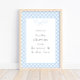 Poster Simples Xadrez Azul Chá de fraldas Arco Bem-vindo