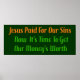 Se Jesus já pagou pelos nossos pecados, podemos ter o nosso dinheiro. "Jesus pagou pelos nossos pecados. Agora é hora de ganhar o valor do nosso dinheiro."