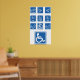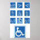 Uma série de diferentes sinais de acessibilidade a cadeiras de rodas. Esta design parece realmente eficaz nestes Poster