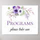 Sinal de programas de casamento com flores de aquarela roxas, lavanda e brancas. As fontes são uma mistura de caligrafia manuscrita e moderna. Se você gostaria deste design em outros sinais de casamento, por favor envie um e-mail para shutterbug600@yahoo.com.