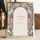 Expresse sua gratidão com este elegante letreiro de agradecimento de casamento inspirado na era vitoriana. Enquadrado com intrincados padrões florais azuis e brancos reminiscentes dos clássicos desenhos de Alphonse Mucha, este letreiro serve como um belo complemento à decoração do seu casamento. O texto "Obrigado - Por celebrar conosco" adiciona um toque sincero a qualquer recepção ou mesa de entrada, fazendo com que os convidados se sintam apreciados por sua presença no seu dia especial. Perfeito para casamentos vintage, tradicionais ou com tema de jardim, este letreiro combina estilo atemporal com uma mensagem significativa.