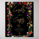 Flores selvagens brilhantes modernas, bridas e presentes assinam sinal de boas-vindas ao chá de panela boêmico. Apresentando flores botânicas de matizes rosa, vermelha, verde e roxa inspiradas em flores silvestres e jardins rústicos de aquarelas com vegetação sutil e tipografia moderna de bico preto.