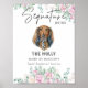A bela placa de bebida com assinatura de cão Dachshund apresenta um belo design floral de animal de estimação em estilo aquarela- perfeito para um casamento saturado em tons neutros. É uma maneira atraente de soar o coquetel, a comida ou a mesa de sobremesa do seu evento! Personalize o sinal de bar de casamento com o nome do animal de estimação e beba detalhes.