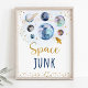 Poster Sinal de Aniversário Dourado Azul Galáxia de Lixo