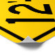 Sinal de aviso de estrada e autoestrada ao estilo internacional, avisando para a frente de uma baixa distância.