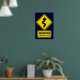 Aviso - Lógica distorcida - poster azul escuro com um design de estilo de sinal de aviso de curva amarela e preta.