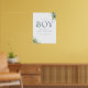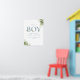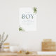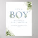 Sinal de boas-vindas para baby shower de menino com uma elegante tipografia azul empoeirada e folhagem verde botânica bonita. Criado por Thisisnotme