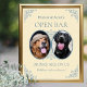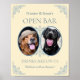 Personalize seu casamento chic amarelo com manteiga de chic com um sinal de bar aberto. Adicione fotos de seus cachorros, gatos ou quaisquer animais de estimação e personalize todo o texto para ler o que você quiser. Perfeito para um dinheiro elegante e velho com tema de casamento de charme vintage para o casal chic, clássico e eterno. Projetado pelo Simple Desert Design Studio para Zazzle. Mande-nos uma mensagem de cores personalizadas para combinar com o seu tema de casamento exato.
